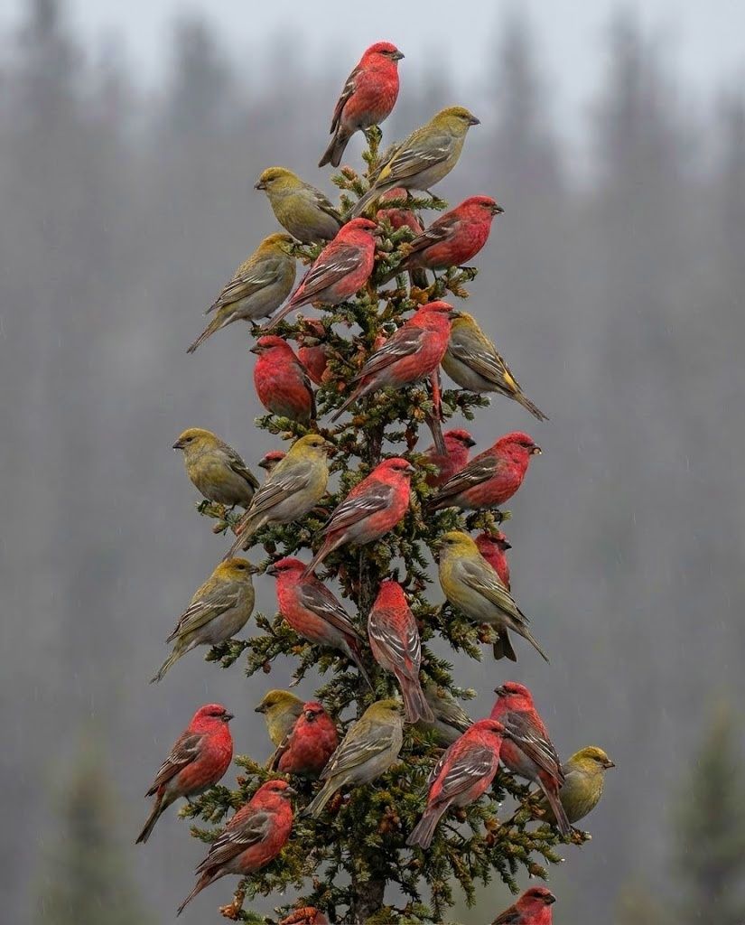 #PineGrosbeak #BorealBirds #ForestGuardian