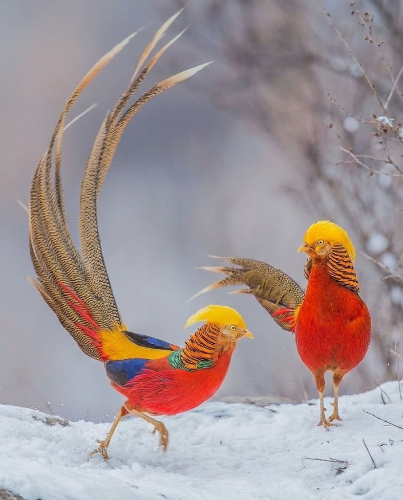 In the shadowed forests and bamboo thickets of central China, these living tapestries move softly along the forest floor. They forage for seeds, shoots, berries, and insects, their golden crests and scarlet mantles flashing briefly in filtered light. What makes them extraordinary is their quiet role in woodland renewal — scratching leaf litter, turning soil, and dispersing seeds that help understory plants thrive. A blaze of color hidden in shadow, yet gentle custodians of the forest’s hidden layers.