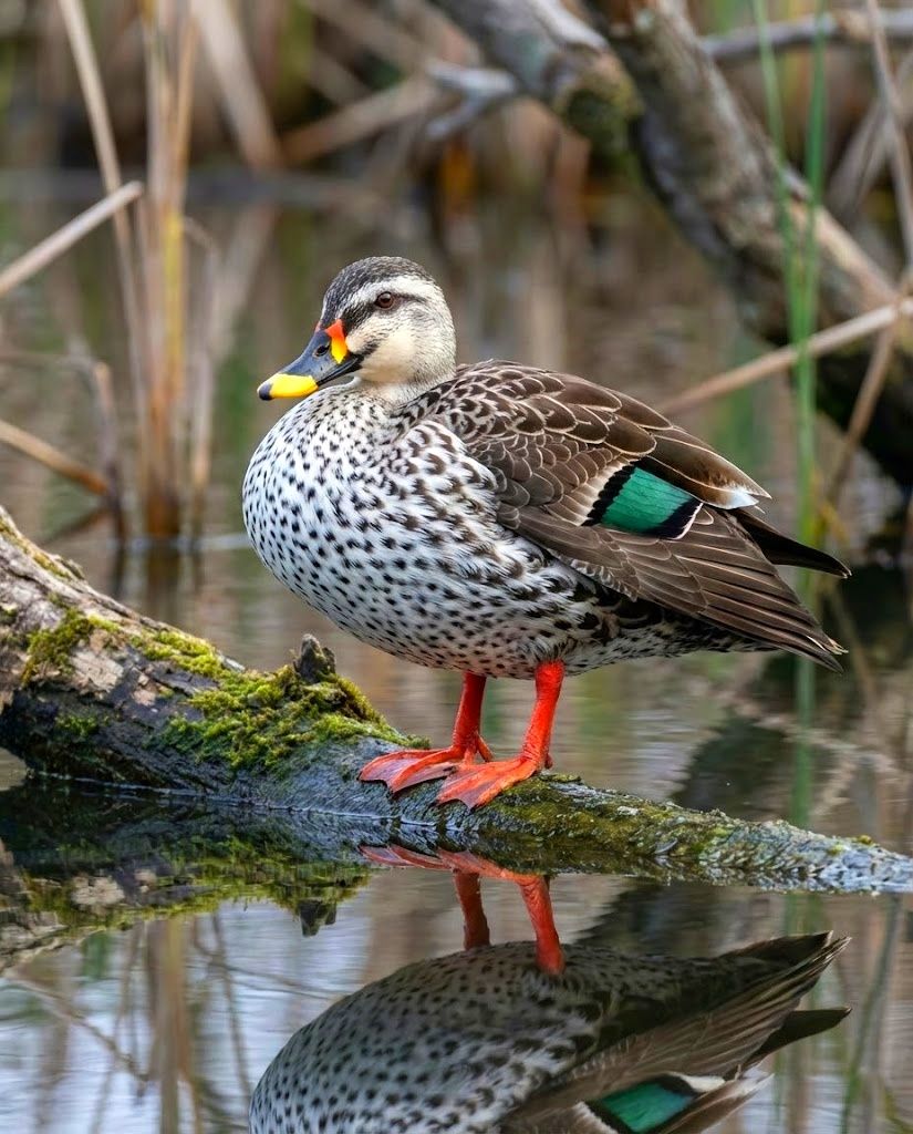 In the calm, reed-lined lakes and village ponds of the Indian subcontinent, this speckled wanderer drifts with easy familiarity. It feeds on aquatic plants, seeds, grains, and small invertebrates, dabbling gently along muddy edges and flooded fields. What makes it extraordinary is its quiet adaptability — thriving alongside human landscapes while helping maintain wetland health by stirring sediments and dispersing plant seeds. A modest silhouette on still water, yet a dependable guardian of everyday wetlands.