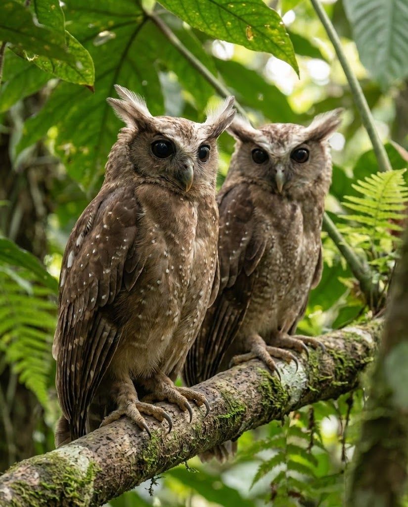 In the moonlit rainforests of Southeast Asia, these shadowed sentinels glide silently between towering trees, their ear tufts rising like watchful flames. They hunt insects, small mammals, and reptiles under the cover of darkness, striking with sudden precision from hidden perches. What makes them extraordinary is their role as nocturnal regulators — keeping prey populations in balance and preserving the fragile rhythms of forest nights. Ghostly shapes in deep shadow, yet steadfast guardians of the jungle after dusk.
