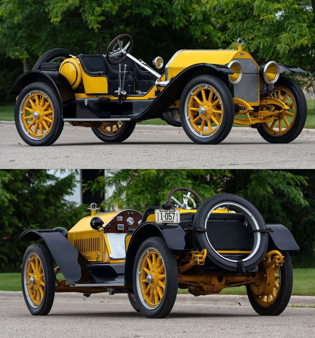 Available in color options including yellow with black accents, the Bearcat offered a spartan yet purposeful design with bucket seats, a tiny “monocle” windscreen, and a cylindrical fuel tank on a short rear deck. Priced at $2,000 (nearly four times the cost of a basic Model T), the model came equipped with a three-speed manual transmission, Warner speedometer, and Bosch ignition. The lack of doors and minimal weather protection emphasized its racing heritage, perfectly embodying the company’s famous slogan: “The car that made good in a day.”