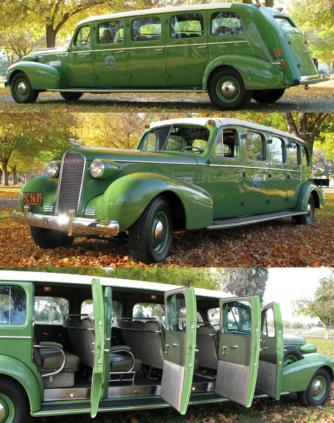Yosemite National Park operated a fleet of specialized touring vehicles built on dramatically modified chassis from Cadillac’s luxury line. The A.J. Miller Company of Bellefontaine, Ohio stretched standard Series 75 frames to an extraordinary wheelbase of just over 200 inches, more than five feet beyond even the commercial chassis specification.