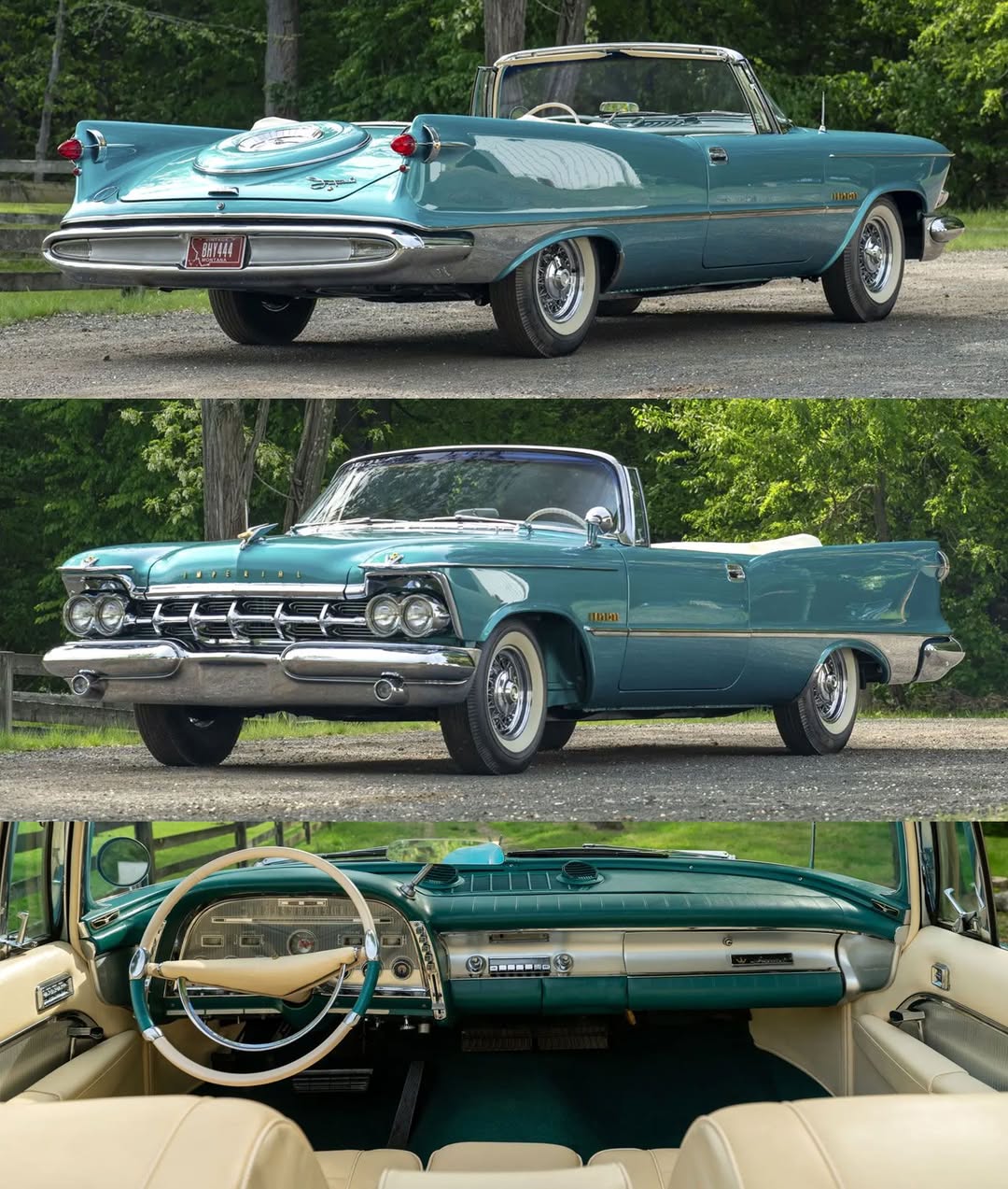 With only 555 convertibles produced for the model year, the Crown Convertible represented Imperial’s mid-range offering between the Custom and top-tier LeBaron. The dramatic styling featured soaring tail fins and Virgil Exner’s “Forward Look” design in its final iteration, making 1959 the last year for this distinctive aesthetic direction that had launched in 1957.