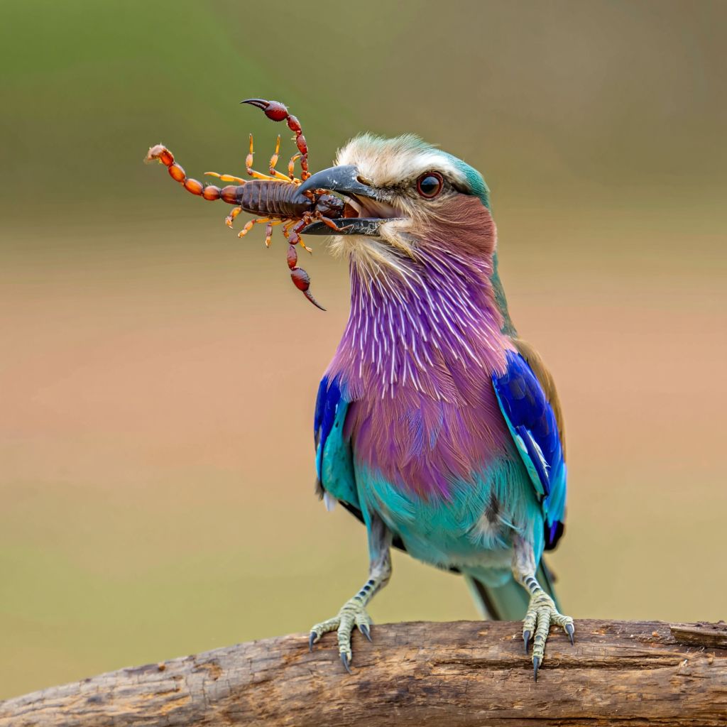 In the sun-drenched savannas of Africa, this living jewel watches from a high perch, perfectly still against the open sky. It dives with sudden precision to seize insects, lizards, and small prey, then returns to its branch in a flash of lilac, turquoise, and chestnut. What makes it extraordinary is how it helps balance the grasslands — by regulating insect and reptile populations, it quietly supports the health of vast savanna ecosystems. A burst of impossible color in flight, yet a steady guardian of the open plains.