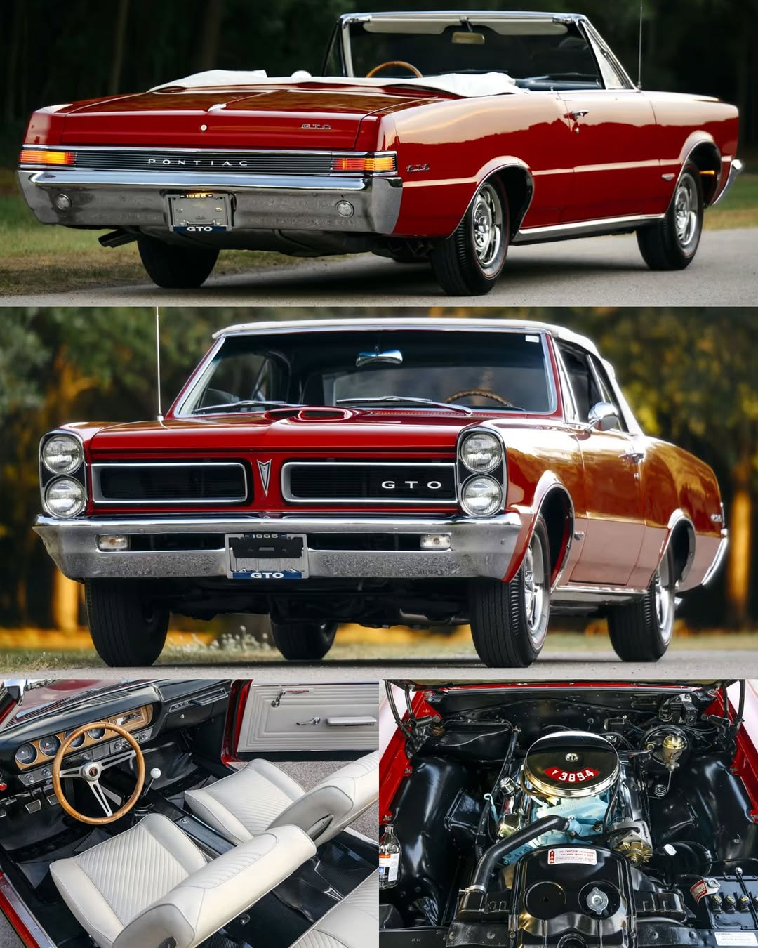 The convertible body style was one of three available GTO bodies (hardtop and sports coupe were the others) and accounted for a fraction of the 75,352 GTOs produced for 1965, making open cars notably rarer than hardtops.