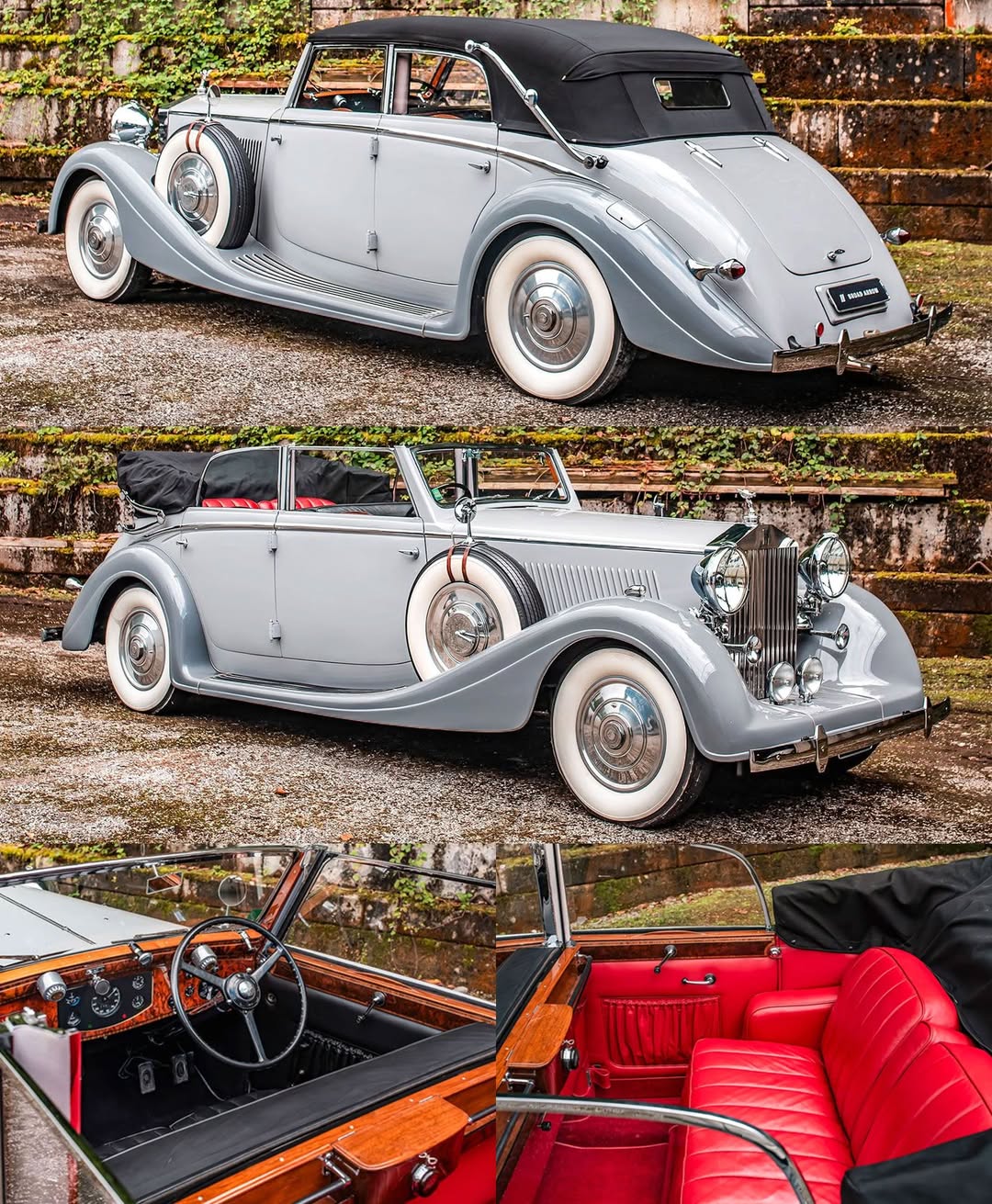 Berlin coachbuilder Voll & Ruhrbeck created a four-door cabriolet body for a Phantom III chassis (shown here), featuring distinctly Germanic styling with heavily skirted fenders and deeply crowned front and rear panels.