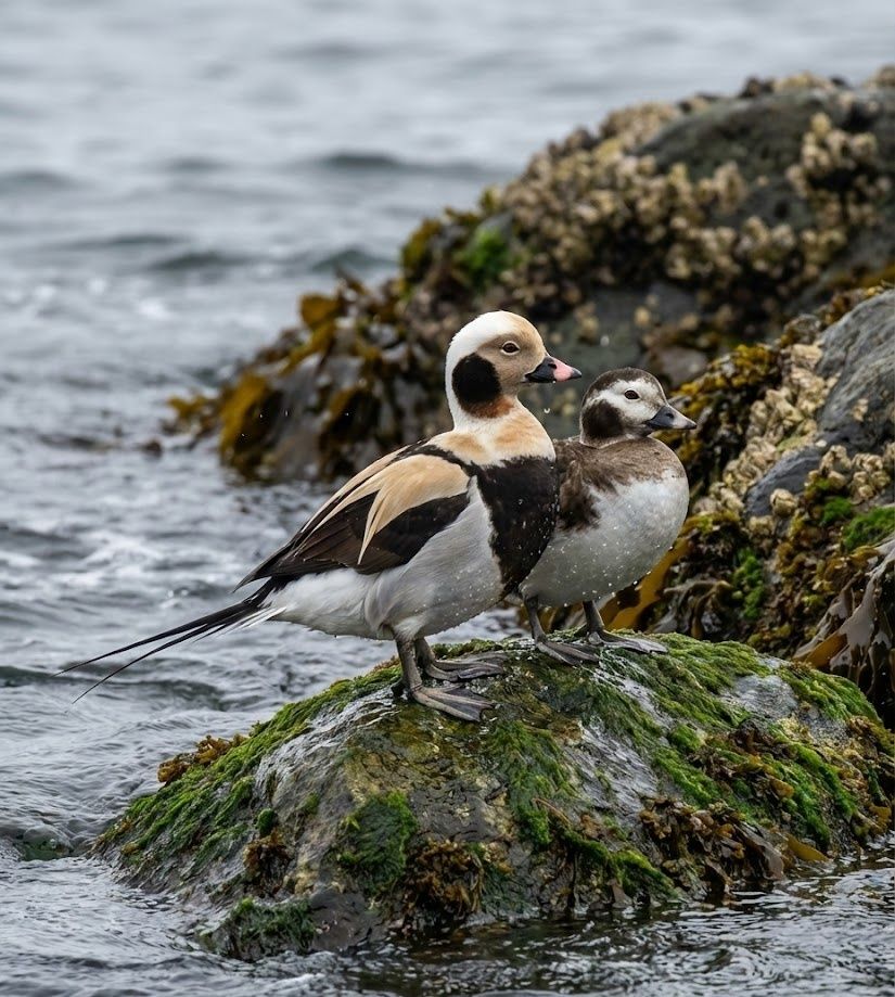 In the icy seas and wind-scoured lakes of the far north, these long-tailed voyagers ride rolling waves with effortless grace. They dive deep for mollusks, crustaceans, and small fish, vanishing beneath frigid waters before resurfacing in loose, chattering flocks. What makes them extraordinary is their endurance — migrating vast distances between Arctic breeding grounds and winter oceans, they knit together distant marine worlds. Elegant in motion and resilient by nature, steadfast keepers of cold, living seas.