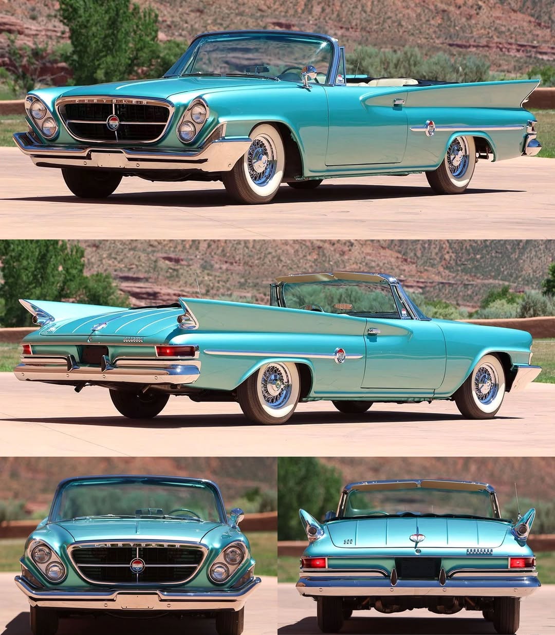 The convertible configuration offered lavish appointments, including individual front bucket seats, a full-length center console, and Chrysler’s futuristic Astra-Dome instrument cluster that evoked aircraft cockpit design. Push-button controls operated the TorqueFlite three-speed automatic transmission from the dashboard, foreshadowing modern electronic shifters.