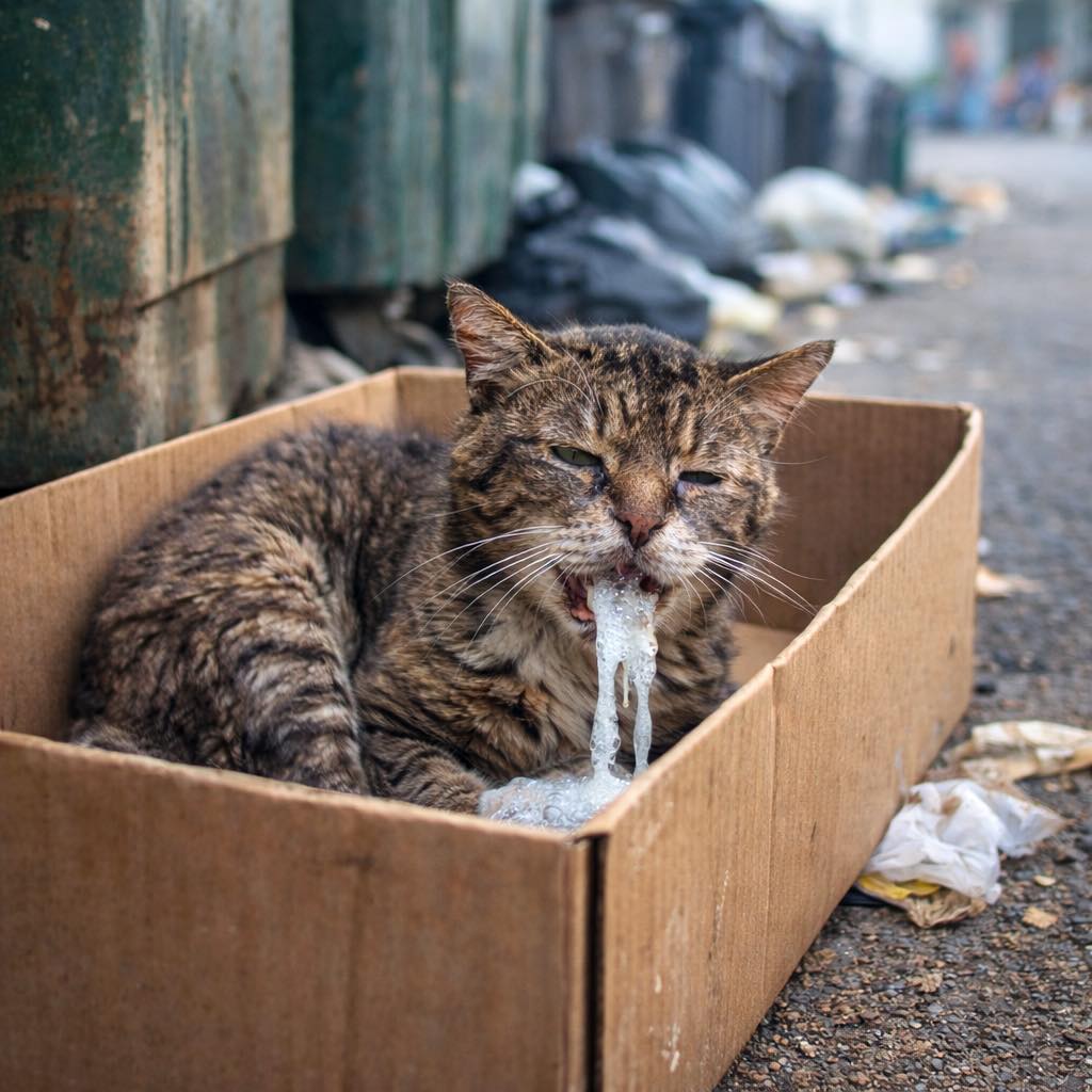 We found this older cat, weak and in pain, struggling to survive. Poisoned. The vet told us that if we had arrived even a minute later, this precious soul might not have made it. Every heartbeat, every ounce of care from the vet team went into saving it—and somehow, against the odds, they did.