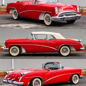 1954 Buick Skylark Factory customization gave this limited-production convertible its distinctive character, with cut-out front fenders revealing contrast-color inner wells that showcased Kelsey-Hayes chrome wire wheels. Sculpted…