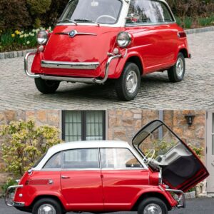 1958 BMW 600 BMW’s stretched microcar retained the original Isetta’s front-opening door and front suspension layout while adding a conventional right-side door, second-row seating, and a new…