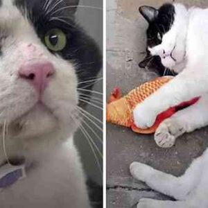 On a dark street, a lone cat stood still, its front legs stretched high above its head in an unnatural position. It wasn’t begging, playing, or stretching—it…