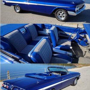 1961 Impala Convertible looking right in that deep blue. Top down, dual antennas, clean lines and that classic rear end with the round taillights… this is what…