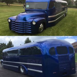 This one has a story behind it. Started life as a 67 passenger GMC school bus, now sitting low and smooth with that old school Chevy front…