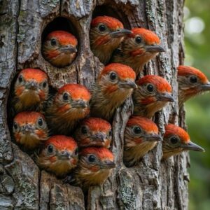 In the sunlit wetlands and grassy clearings of northern South America, this scarlet-crowned sentinel perches boldly above reeds and riverbanks. It feeds on seeds, grains, and small…