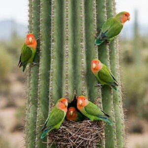 In the sun-baked savannas and arid woodlands of southwestern Africa, these rosy-cheeked companions flit between acacia and desert shrubs with playful ease. They feed on seeds, fruits,…