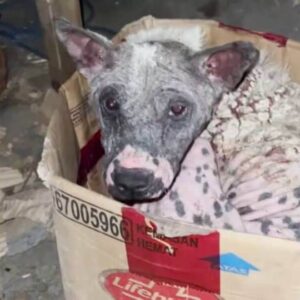 Bare Skinned Pup Curled Into a Tiny Box Until Kindness Finally Found Her