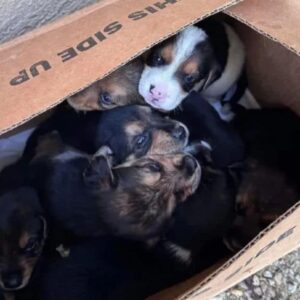 Woman Rescues 7 Puppies Found Inside A Box Covered With A Water Hose After Hearing Their Cries