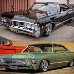 Two clean Impalas laid out just right. The black one looks mean and smooth like it is ready to cruise after sunset. The green one has that…