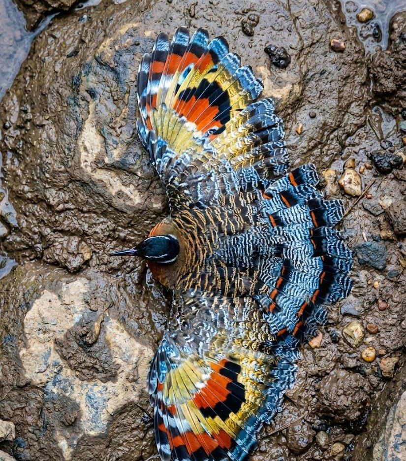 In the quiet forest streams and shaded riverbanks of Central and South America, this elegant wanderer steps with deliberate calm along stones and sandbars. It feeds on insects, small fish, and amphibians, stalking shallow water with patient precision. What makes it extraordinary is the hidden spectacle it carries — when threatened, it suddenly spreads its wings to reveal vivid eye-like patterns, a flash of surprise in an otherwise subdued life. Graceful and understated by day, dramatic in defense, a subtle guardian of tropical waterways.