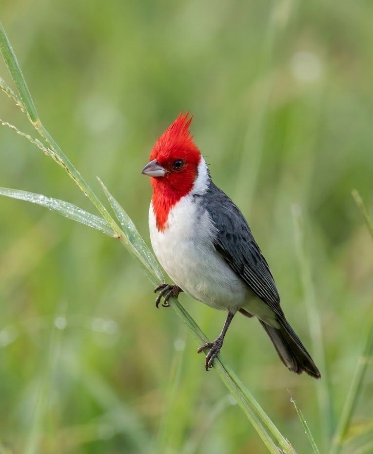 In the sunlit wetlands and open woodlands of South America, this scarlet-crowned songster moves with poised confidence along water’s edge. It feeds on seeds, insects, and tender shoots, foraging low among reeds and grasses where land meets shallow water. What makes it extraordinary is its adaptability — thriving in natural marshes and human-shaped landscapes alike, it helps recycle nutrients and spread plant life across flooded plains. Crisp in contrast and clear in voice, a familiar yet vital presence of the lowlands.
