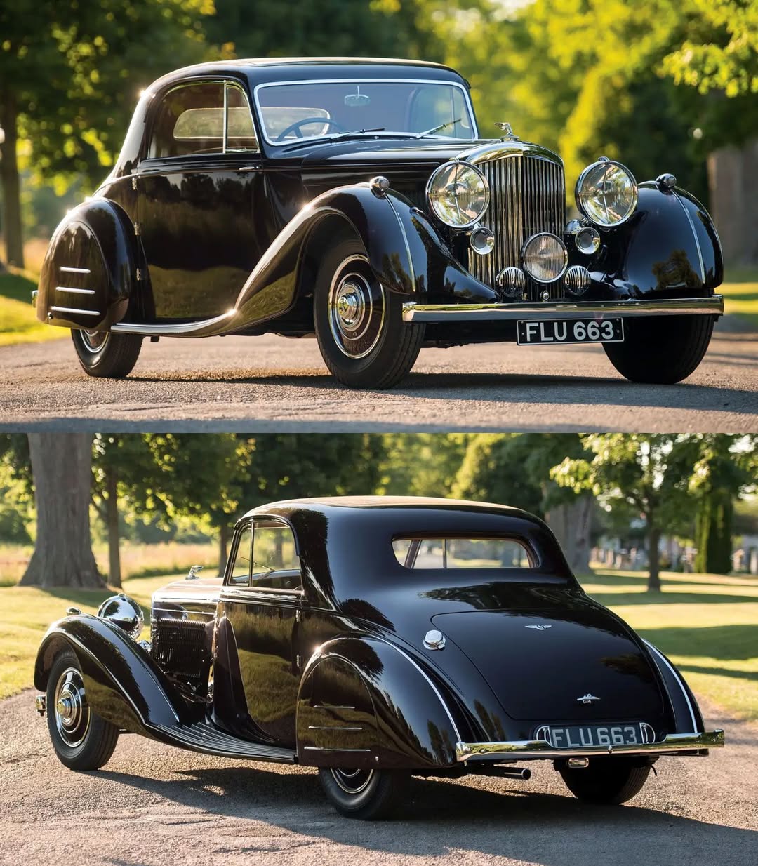 The sleek fastback was conceived as Bentley’s answer to the Mercedes-Benz 540 K Autobahn Kurier, built on the advanced “MR” chassis with fixed radiator shutters and a sportier dashboard configuration. Innovative features included a “sunshine roof,” frameless side windows with mechanical lifts, integrated lighting, and complete rear wheel spats. Its most distinctive element was a power-operated roller blind covering the rear window—a somewhat provocative touch that, along with generous luggage space behind the seats, earned it the enduring nickname “Honeymoon Express” in period press.