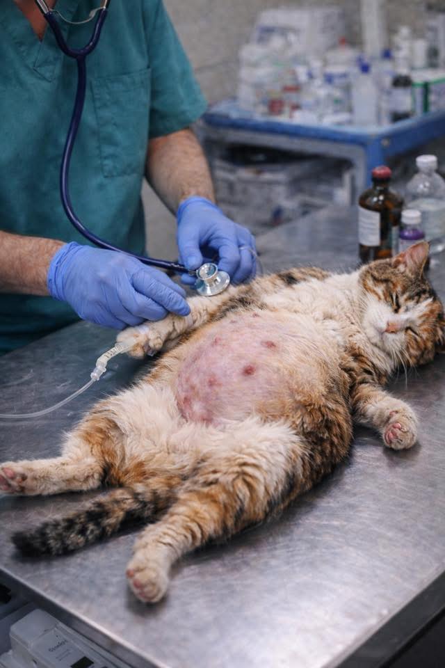 I found this mother cat, heavily pregnant, abandoned near a pile of trash.