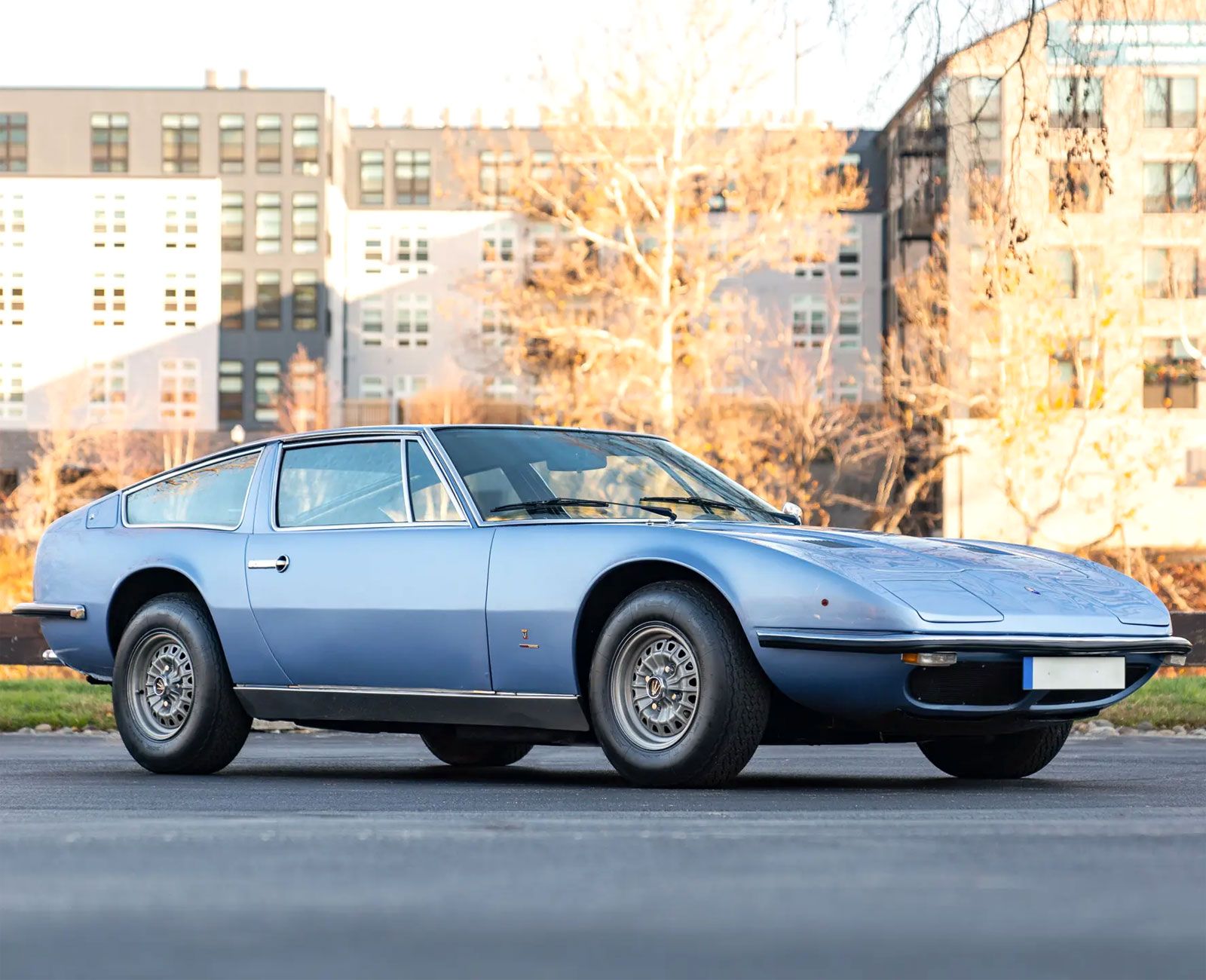 Unveiled at the 1969 Geneva Motor Show, the model honored Maserati’s consecutive Indianapolis 500 victories in 1939 and 1940. The design featured pop-up headlights, a large rear trunk lid for luggage access, and steel unibody construction.