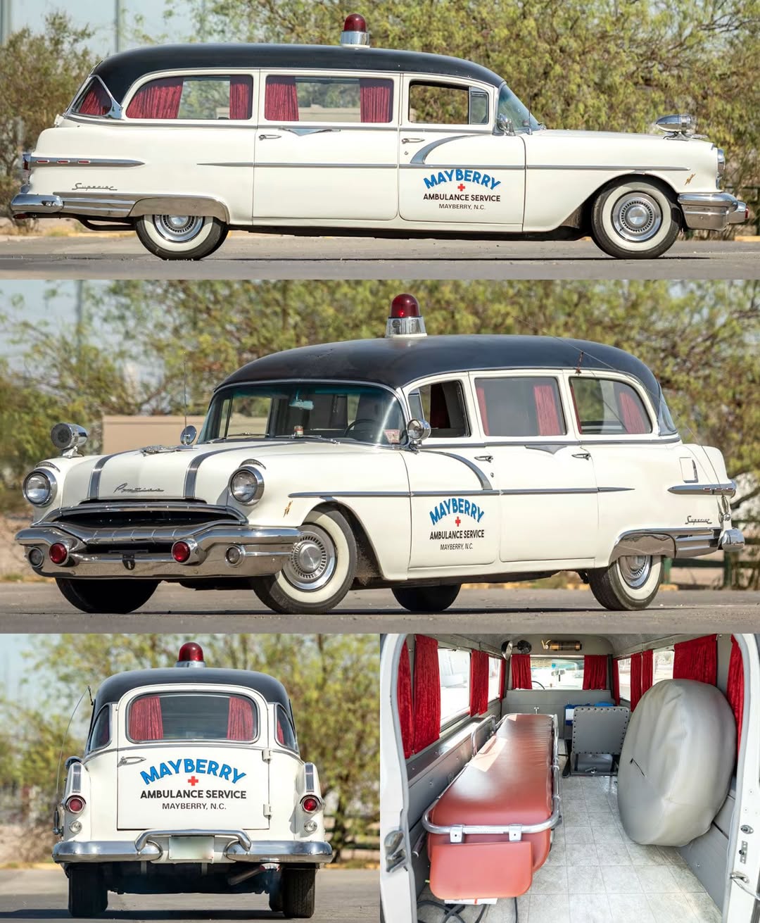 This particular example was restored to depict a period ambulance from the fictional town of Mayberry, North Carolina, the setting of the iconic “The Andy Griffith Show” and “Mayberry, R.F.D.” television series.
