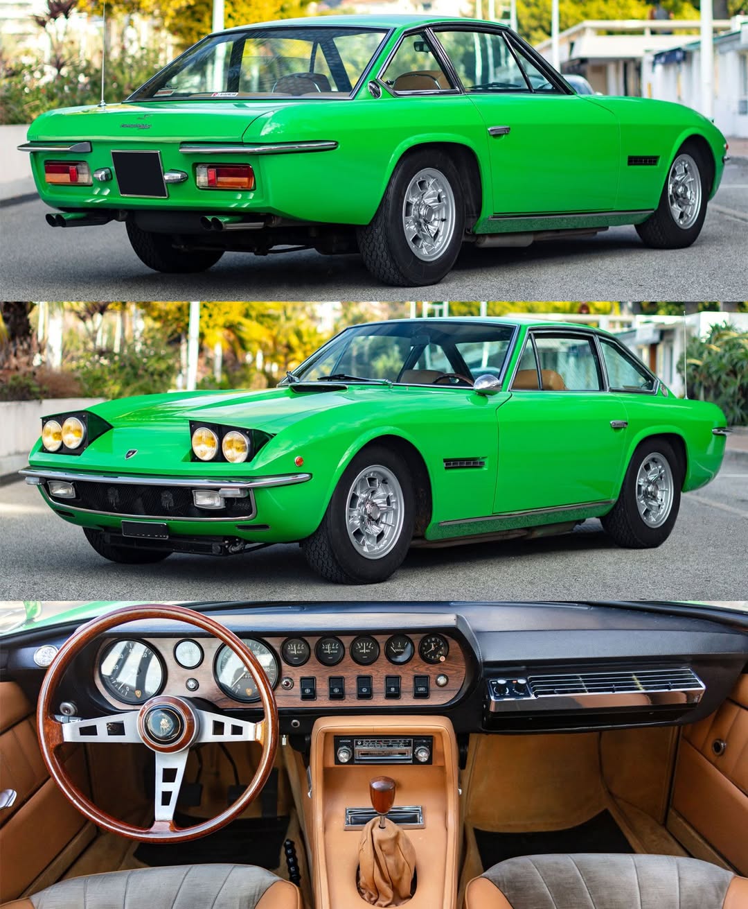 Giotto Bizzarrini’s four-cam 3.9-liter V12 produced 350 horsepower through six Weber carburetors, delivering roughly 25 additional horsepower over the standard Islero and matching the Miura S on paper.