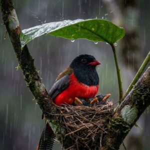 In the deep, dappled forests of sub-Saharan Africa, this emerald-and-crimson jewel waits in patient stillness beneath the canopy. It feeds on ripe fruits and passing insects, launching…