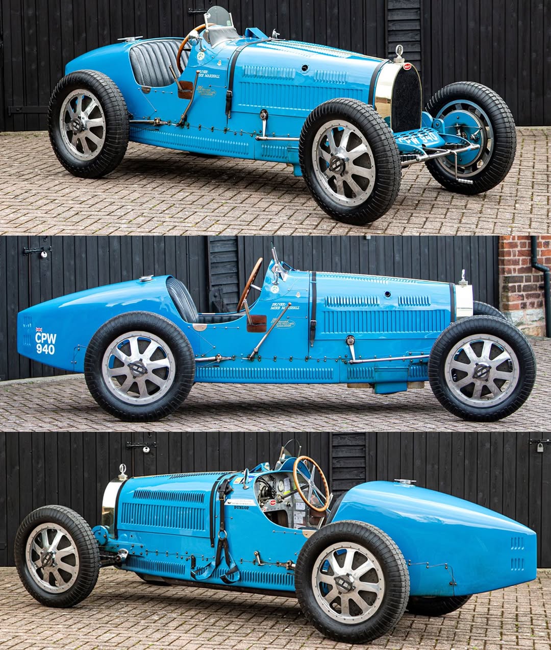 The 2.3-liter straight-eight engine with five plain main bearings produced approximately 135 horsepower, fed through a four-speed manual transmission to a chassis featuring a hollow front axle and cast alloy wheels that became Bugatti trademarks.
