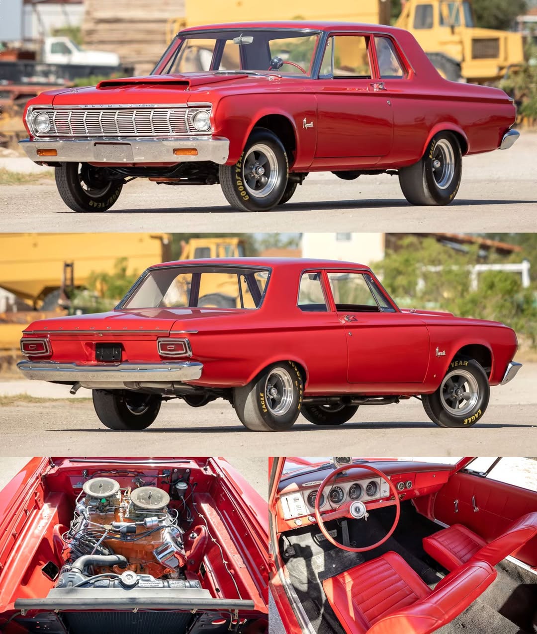 Introduced in 1964, this remarkable drag racing machine was developed during the heated “Win on Sunday, Sell on Monday” era when major automakers competed for dominance on America’s quarter-mile strips. The Savoy Lightweight featured the powerful code-A864 Hemi engine producing 425 horsepower with 12.5:1 compression ratio, transistor ignition, and offset Holley 4-barrel carburetors on a cross-ram intake. The car used a TorqueFlite automatic transmission paired with independent front suspension and live rear axle, all brought to a stop by 4-wheel drum brakes.