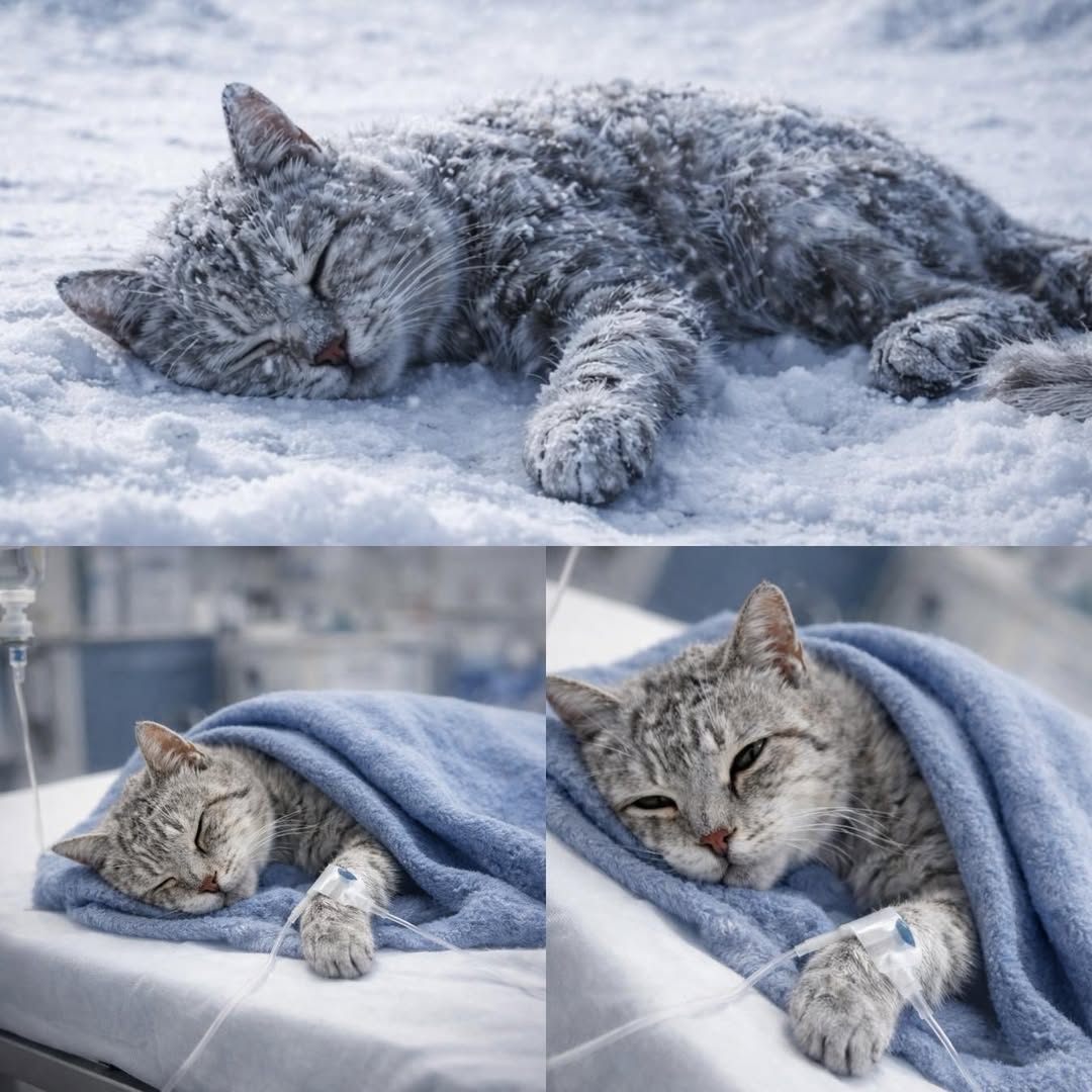 I found this little kitten outside, barely alive—too weak to even walk, frozen from the cold. In that moment, I took the baby straight to the veterinarian because the cold had completely overtaken its body.