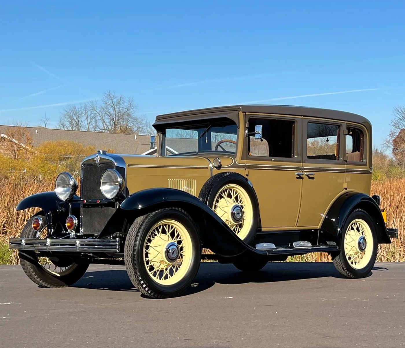 Marketed as “A Six in the price range of the Four,” the 194-cubic-inch engine delivered six-cylinder refinement at four-cylinder pricing, a compelling proposition as the economy contracted. Steel wheels remained standard through mid-1930, when wire wheels became optional across the line.