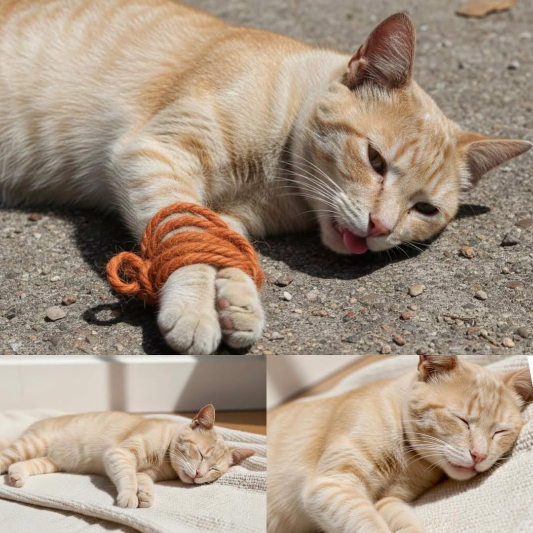 We picked up a small orange tabby from beside a trash bin—his paws were tied together, his body weak, his breath barely there. We could feel how long he had been hurting. We knew we were too late.
