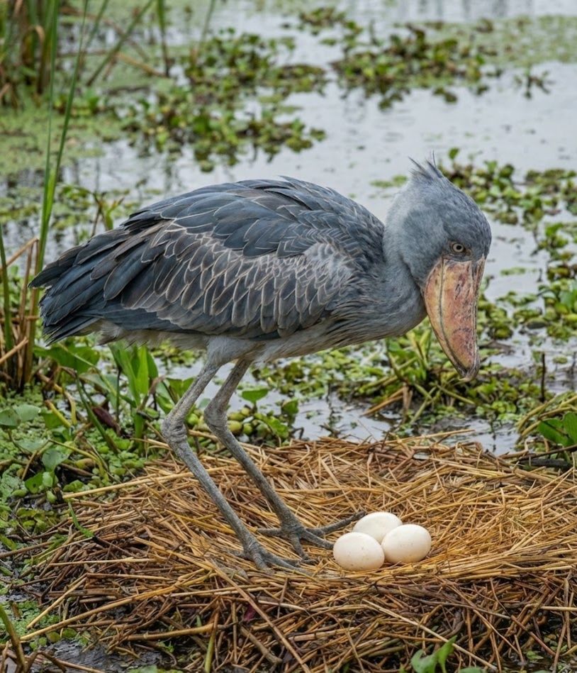 In the silent papyrus swamps of central Africa, this ancient-looking sentinel stands motionless, as if time itself has paused around it. It waits with immense patience, then strikes with sudden precision, seizing lungfish and other aquatic prey in its massive, shoe-shaped bill. What makes it extraordinary is its role as a ruler of the marsh — by controlling fish populations, it helps keep wetland ecosystems balanced and thriving. A living relic of another age, yet a steadfast guardian of the swamps.