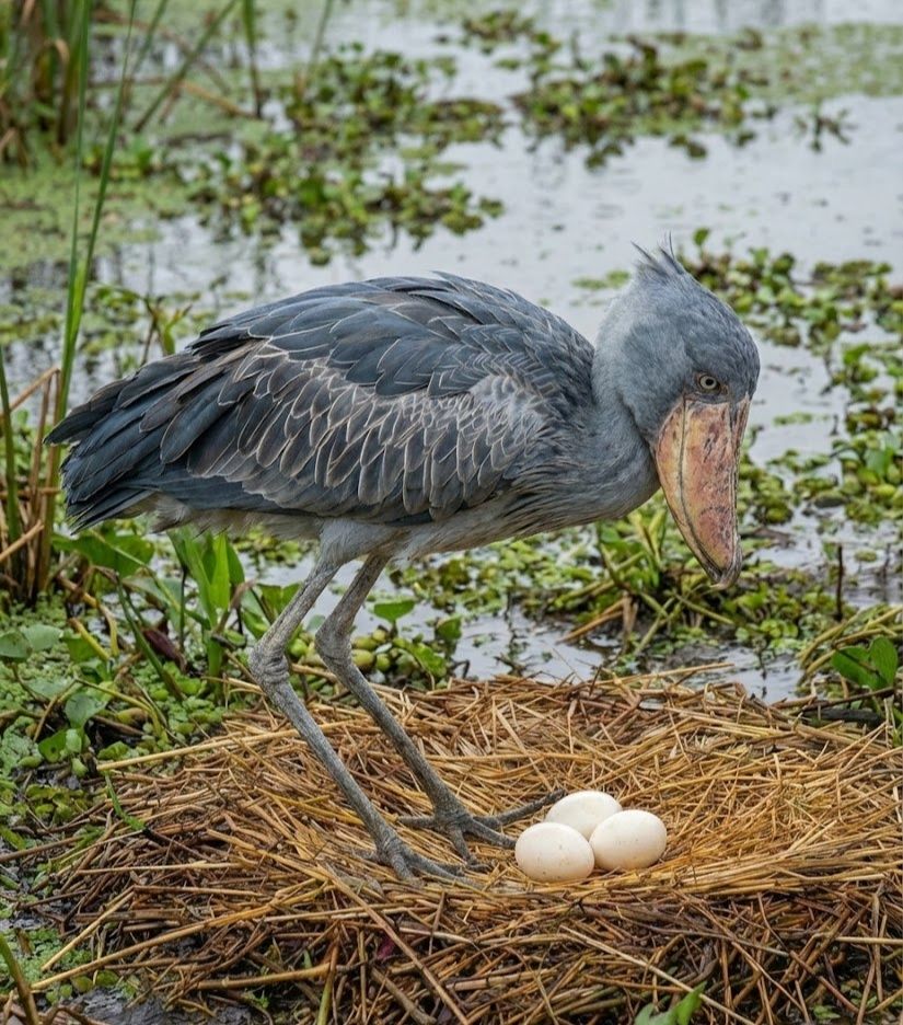In the silent papyrus swamps of central Africa, this ancient-looking sentinel stands motionless, as if time itself has paused around it. It waits with immense patience, then strikes with sudden precision, seizing lungfish and other aquatic prey in its massive, shoe-shaped bill. What makes it extraordinary is its role as a ruler of the marsh — by controlling fish populations, it helps keep wetland ecosystems balanced and thriving. A living relic of another age, yet a steadfast guardian of the swamps.