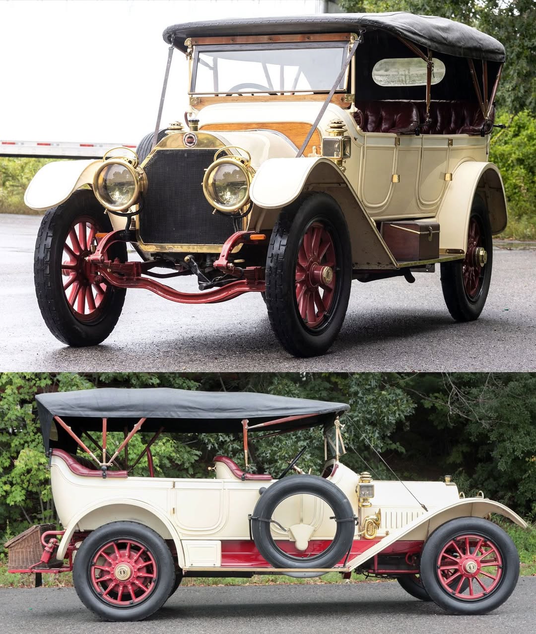 This 1912 ALCO 40 Tourer featured a 454-cubic-inch T-head four-cylinder engine producing approximately 60 horsepower. Power was delivered through a four-speed sliding-gear transmission, with traditional semi-elliptic leaf springs used front and rear.