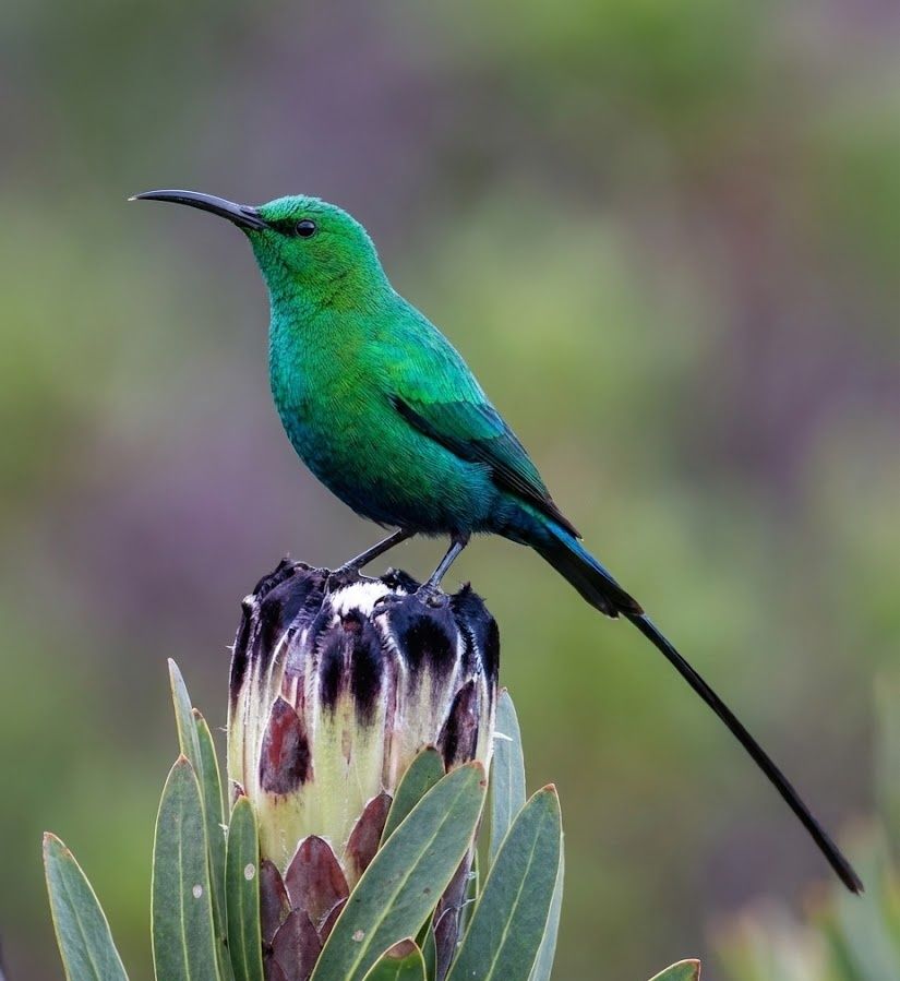 In the highland gardens and montane forests of eastern and southern Africa, this emerald blaze hovers among blossoms like a living jewel. It feeds on nectar from aloes and tubular flowers, its long curved bill perfectly shaped to sip hidden sweetness, while also taking small insects along the way. What makes it extraordinary is its role as a tireless pollinator — stitching plant communities together as it moves from bloom to bloom across cool mountain slopes. A flash of metallic green in the sun, yet a vital heartbeat of flowering highlands.