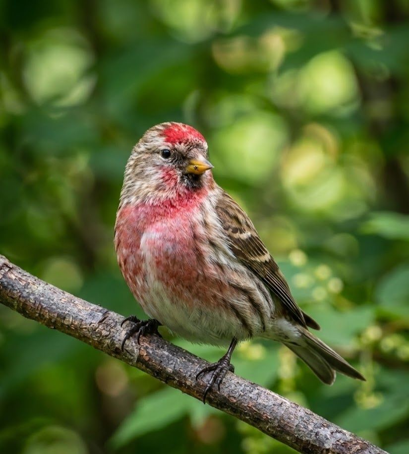 In the breezy birch groves and weedy edges of northern Eurasia, this rosy-capped drifter flutters in lively, tinkling flocks. It clings to seed heads and catkins, extracting tiny grains with deft, acrobatic movements. What makes it extraordinary is its resilience — thriving in cold, shifting landscapes and roaming widely as seed crops rise and fall, it keeps plant life circulating across open country. A soft blush of red against muted skies, yet a steadfast courier of the seasons.