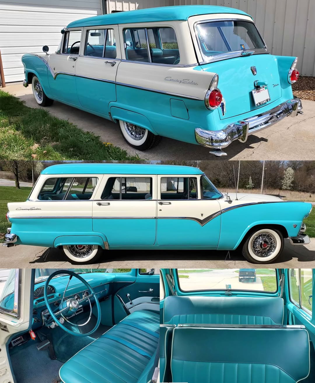 Ford’s 1955 station wagon lineup included five variants, with the Country Sedan positioned between the entry-level Ranch Wagon and the flagship Country Squire.