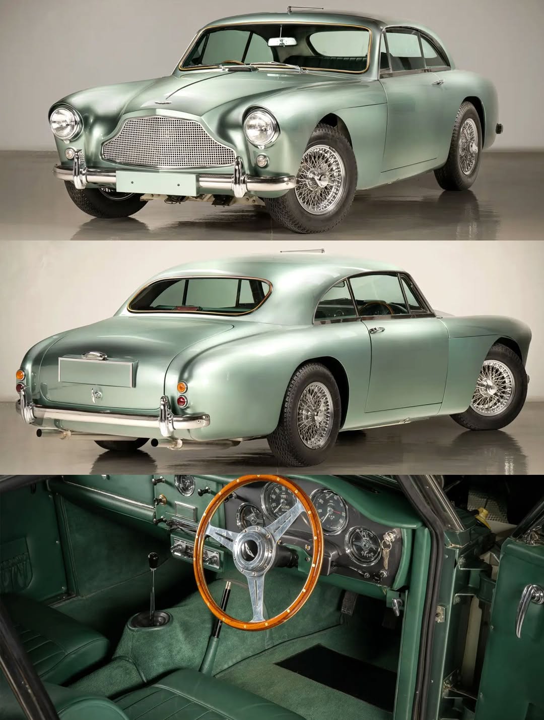 The project was ultimately abandoned when Italian coachbuilder Touring Superleggera insisted on a platform chassis instead. It then became the personal transport of Mrs. Brown, wife of Aston Martin Lagonda’s chairman. Now finished in Almond Green with Fern Green leather interior, it still retains its numbers-matching engine.