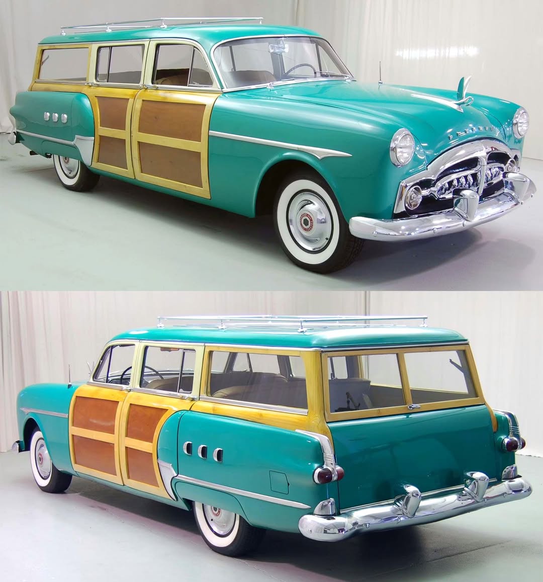 Factory design studies from the early 1950s proposed a wood-bodied wagon variant called the El Paso, shown alongside companion concepts named the Parisian and Pacifica. While Packard never built these designs in Detroit, the sketches survived and inspired a custom build approximately 15 years ago by a Packard enthusiast in Eureka, California.