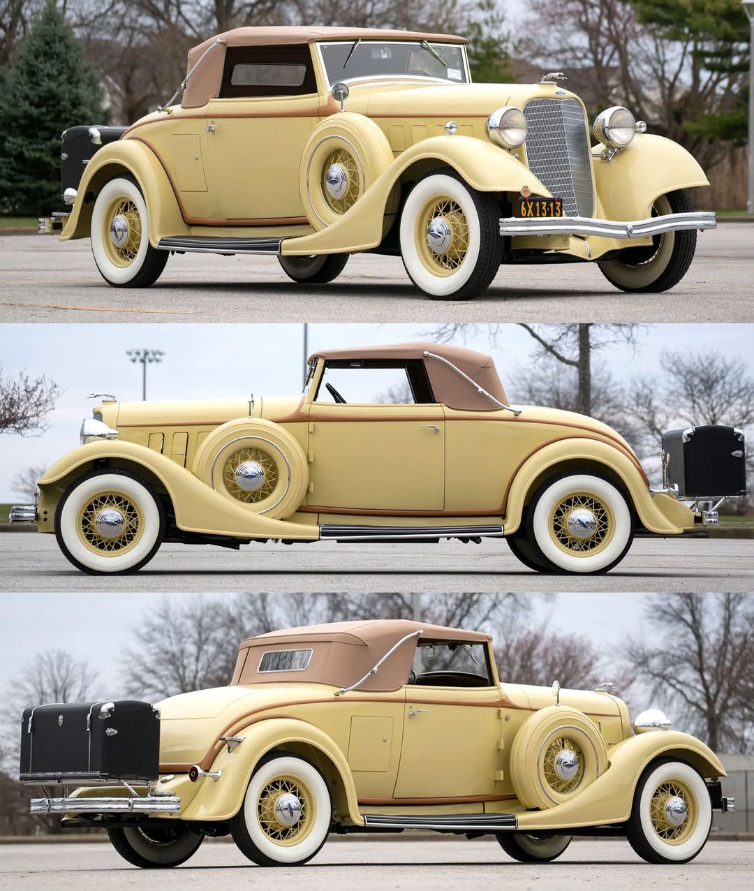 The convertible top incorporated substantial landau irons, and a distinctive rumble seat provided additional seating with its own windscreen.