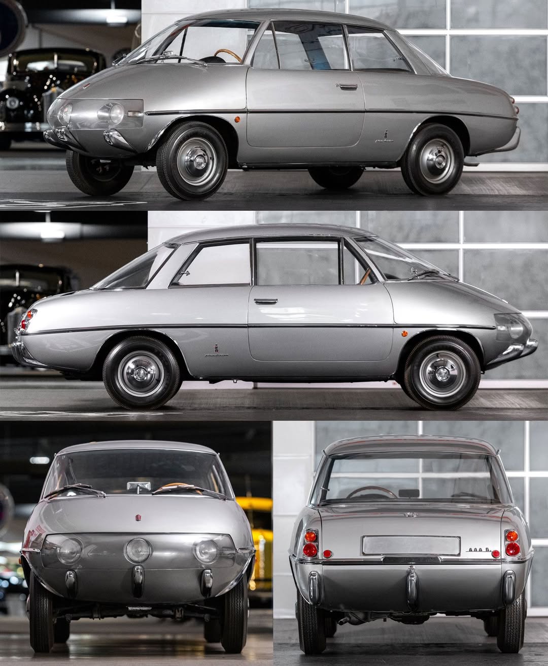 The 1960 Project X was the most radical of the series. It was built on a Fiat 1100 chassis with a diamond-shaped four-wheel layout and an exceptional drag coefficient of just 0.23. It was a pure research exercise, entirely impractical for production.