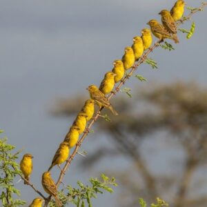 In the sun-baked savannas and dry farmlands of northeastern Africa, this bright-crowned wanderer gathers in lively flocks across open ground. It feeds on grass seeds and scattered…