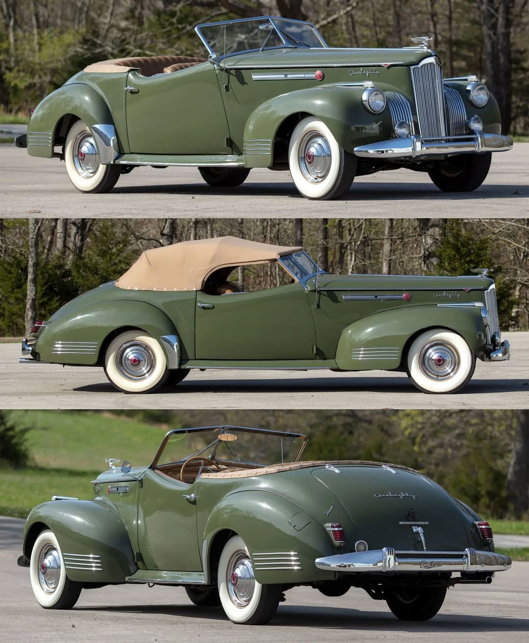 Built on Packard’s 138-inch One-Eighty chassis, the convertible featured elegant proportions with classic proportions and refined detailing. Power came from Packard’s 356 cubic inch inline eight-cylinder engine producing 160 horsepower, paired with a three-speed manual transmission with optional overdrive.