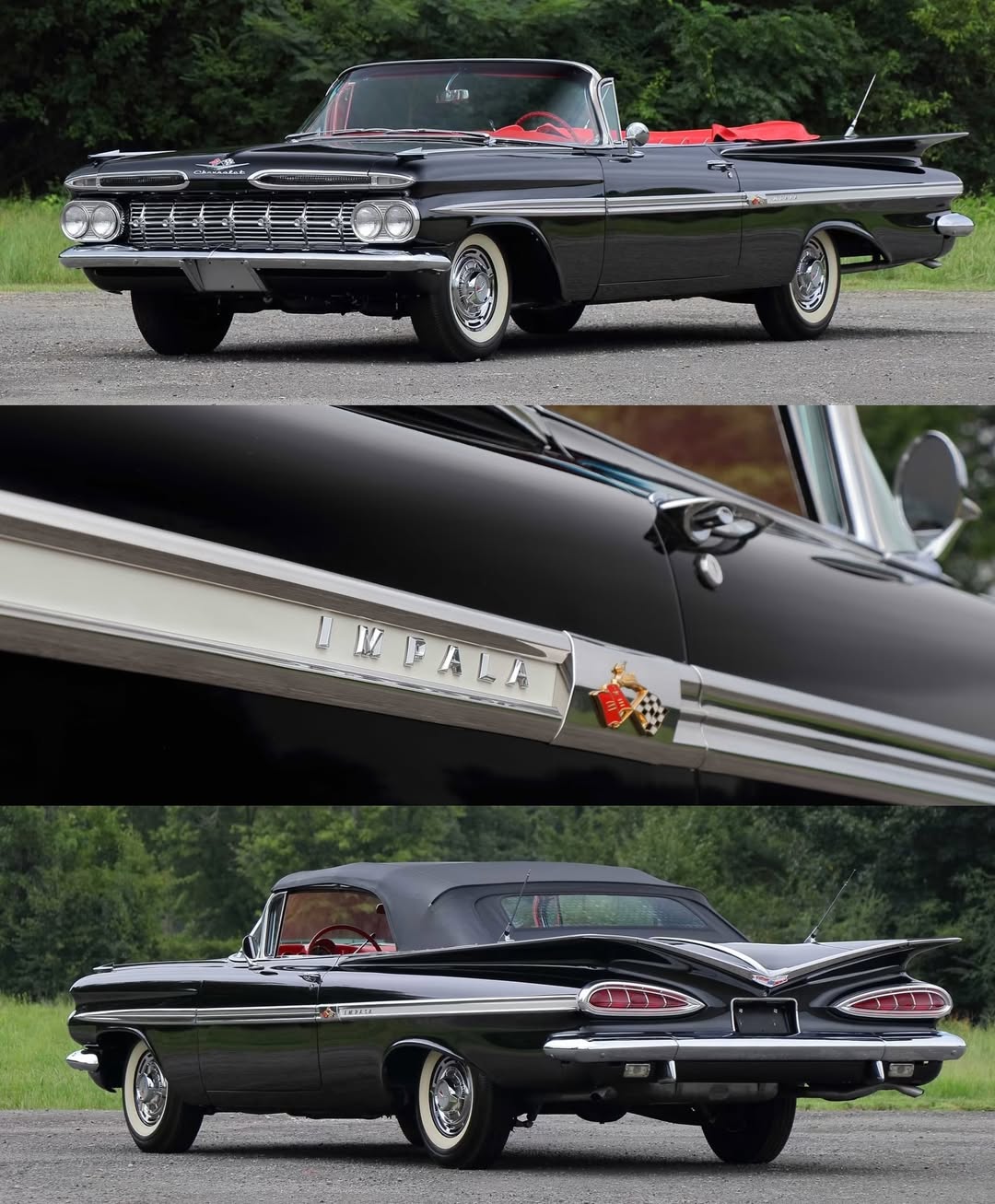 Those tail fins alone tell you everything you need to know. This was the era when cars were bold, dramatic, and full of personality. Black paint, red interior, top down and ready to cruise like it is still 1959.