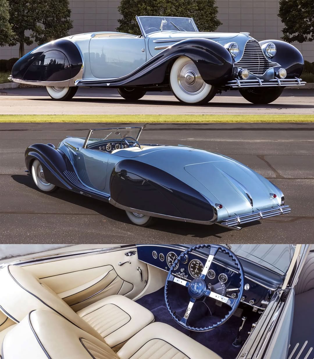 The flowing Art Deco styling incorporated sweeping pontoon fenders, concentric-ringed disc wheels, rear fender skirts, and ornate geometric grilles that gave these cabriolets an unmistakably theatrical presence.